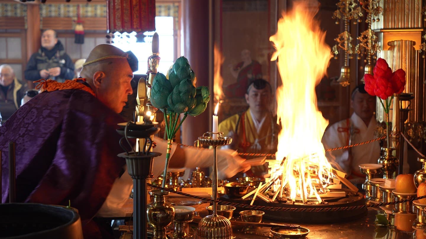 また、火には焼くという働きがあります。そのため、護摩の火で煩悩や身に降りかかる諸々の悪いこと、嫌なことを焼き尽くすという意味もあります。当山では火を制することから火災除け、すなわち火伏まつりともいわれています。